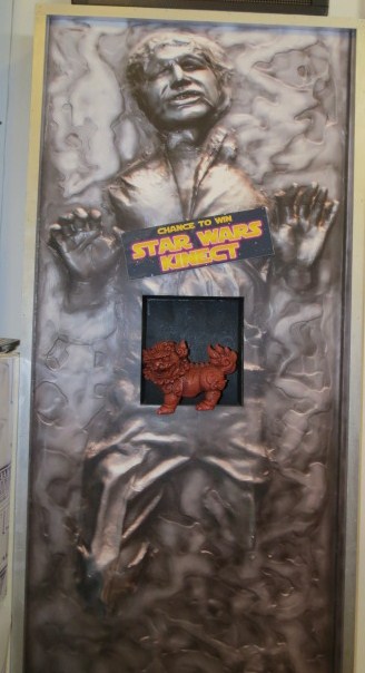 Foo found himself in a galaxy far, far away when he stumbled on this motley crew. Darth Vader tried to get Foo to come over to the dark side, but Chewy had another opinion. Soon there was a fray and Foo got away...